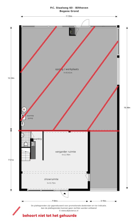 De kantoorruimte met bedrijfsruimte wordt opgeleverd in de huidige staat, voorzien van: