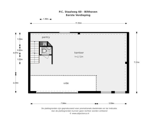 circa 62 m² kantoorruimte gelegen op de 1e verdieping;