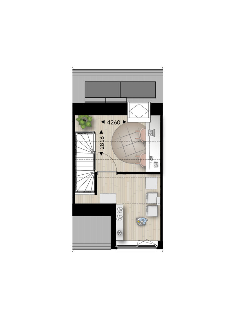 Niet alleen de wijk is mooi, maar ook de woning. Deze tussenwoningen zijn namelijk verrassend ruim en heerlijk licht. Je komt binnen in de hal met toilet en loopt vervolgens door naar de open leefruimte. Aan de voorzijde vind je de moderne keuken, die al helemaal voor je is ingericht, van oven tot kookplaat. Zo kun je meteen je favoriete recepten uitproberen. Achterin de woning is ruimte voor een fijne zithoek en een eettafel, met uitzicht op de tuin. Zet de schuifpui open, voel de zon naar binnen stromen en geniet van je eigen plek buiten. En in de berging in de tuin stal je makkelijk je fiets of berg je je tuinkussens op. Zo heeft alles z’n plek.