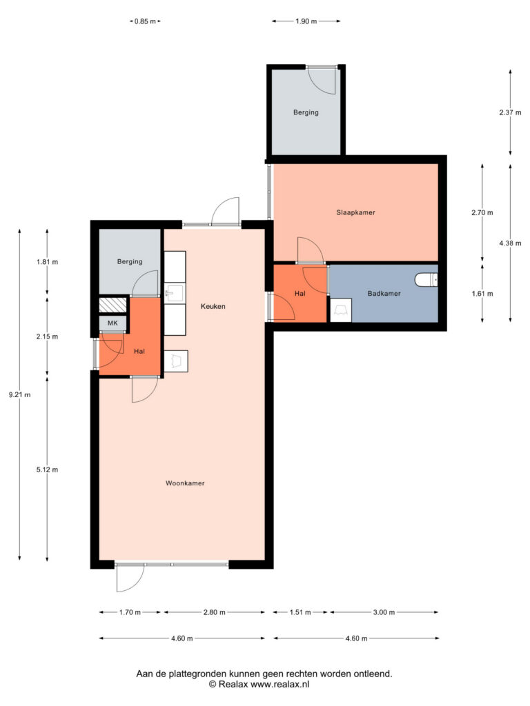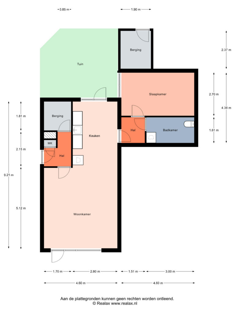 De officiële entree zit aan de zijkant van het appartement. Er is ook een ingang aan de voorzijde én je zou via de achterom aan de achterzijde binnen kunnen komen. Entree (zijkant), hal met meterkast en handige inpandige berging. Binnenkomst in de woonkamer en keuken. De keuken is open ten opzichte van de woonkamer en vanuit de keuken bereik je de tuin. De indeling van het appartement is leuk speels. Het is zeker geen recht toe, recht aan appartement!