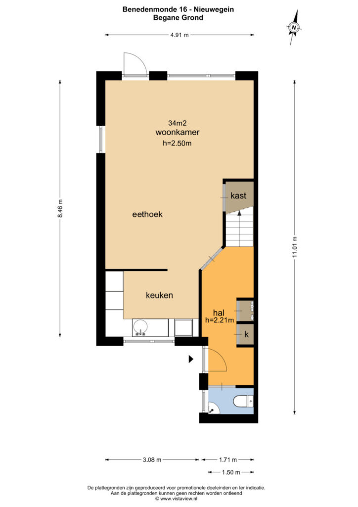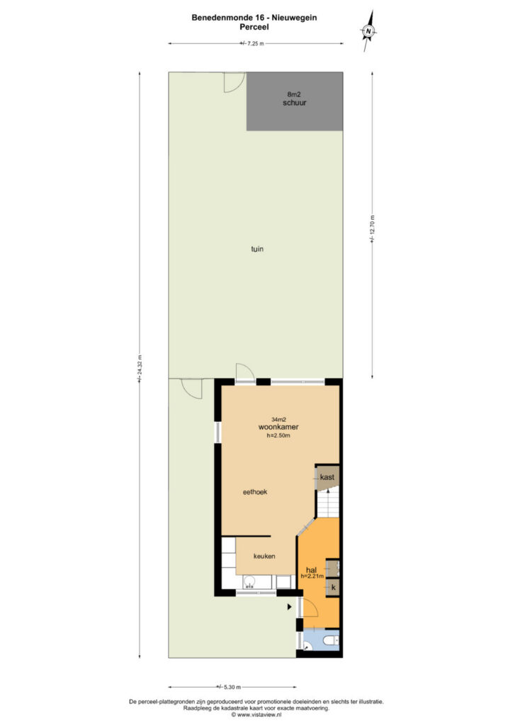 Entree, hal met meterkast en toilet. De woonkamer is tuingericht en heeft extra veel natuurlijk daglicht vanwege het zijraam. De woonkamer is circa 34 m² groot en er is veel ruimte voor een grote eettafel en een grote bank. De extra brede achtertuin bereik je via de woonkamer en is heerlijk ruim: circa 94 m². Er is een achterom en een houten berging. De keuken ligt aan de voorzijde van de woning en is in L-vorm. Er is veel werk- en bergruimte aanwezig in de keuken.