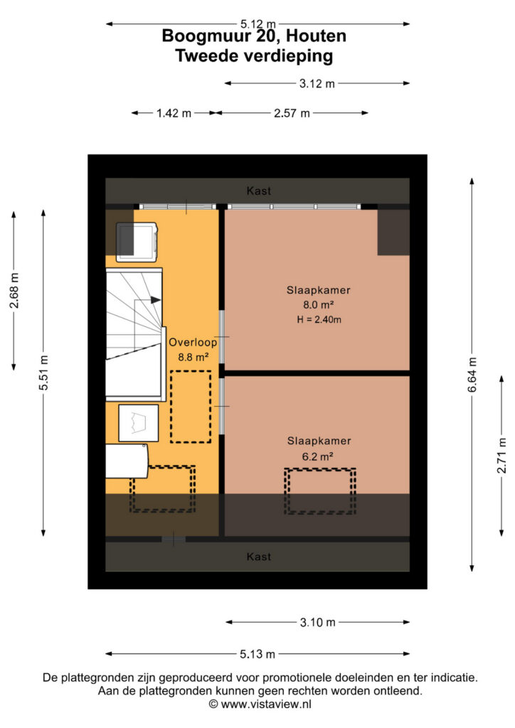 Via een vaste trap bereik je de tweede verdieping. Op de voorzolder bevindt zich de wasmachine-aansluiting. Deze verdieping telt twee slaapkamers. Aan de achterzijde zorgt een dakkapel voor extra ruimte en licht, terwijl de slaapkamer aan de voorzijde is voorzien van een Velux dakvenster. Daarnaast is deze verdieping uitgerust met airconditioning, wat zorgt voor een aangenaam binnenklimaat, ook tijdens warme zomerdagen.