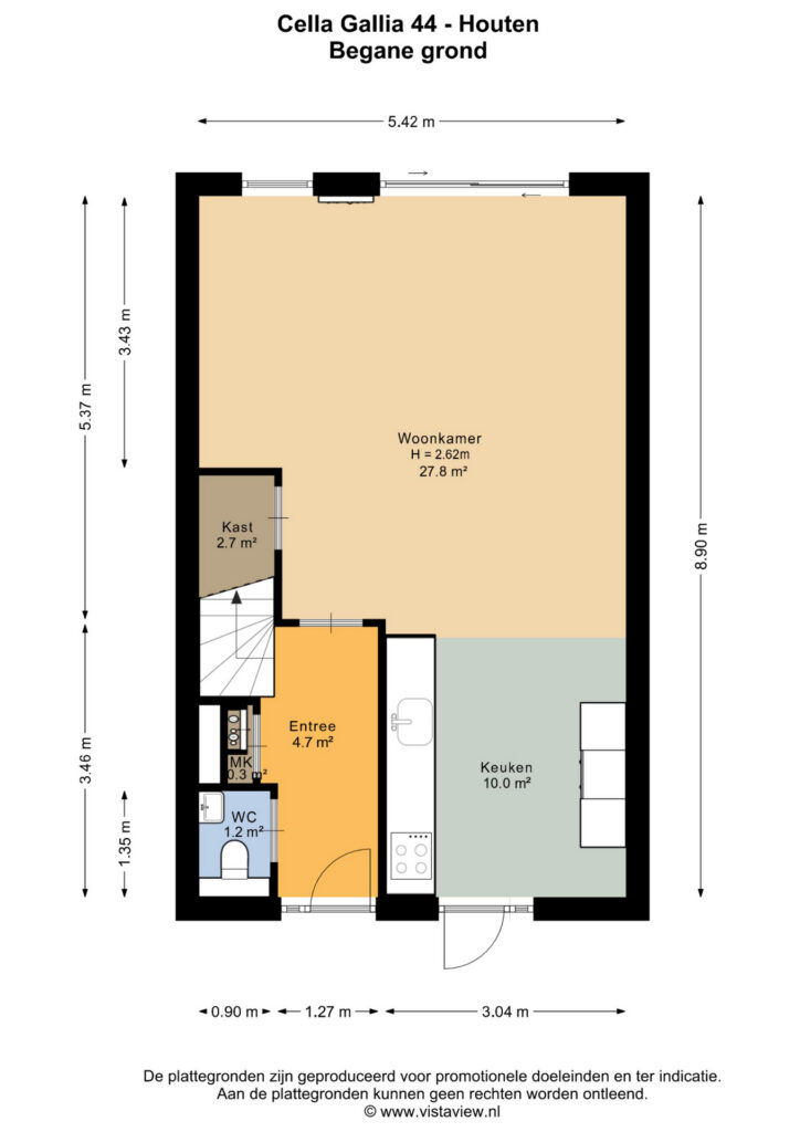 Nadat je de auto op een van de eigen parkeerplaatsen hebt geparkeerd, loop je via de voortuin de woning binnen. In de voortuin staat de stenen berging, waar je ideaal de fietsen en overige zaken kunt stallen. Bij de entree vind je direct aan de linkerzijde de moderne betegelde toiletruimte met hangend toilet en fontein. Direct aangrenzend aan de toiletruimte tref je de meterkast. Hiernaast vinden we de trapopgang naar de eerste verdieping. Wanneer je rechtdoor loopt, bevind je je in de woonkamer. Aan de linkerzijde vind je de trapkast om de nodige spullen op te bergen. Het natuurlijk daglicht stroomt de woonkamer binnen door de grote raampartijen. Tussen de woonkamer en de open keuken kun je ideaal de eettafel plaatsen. De moderne keuken beschikt over alle benodigde inbouwapparatuur. Tevens kun je vanuit de keuken de voortuin bereiken.