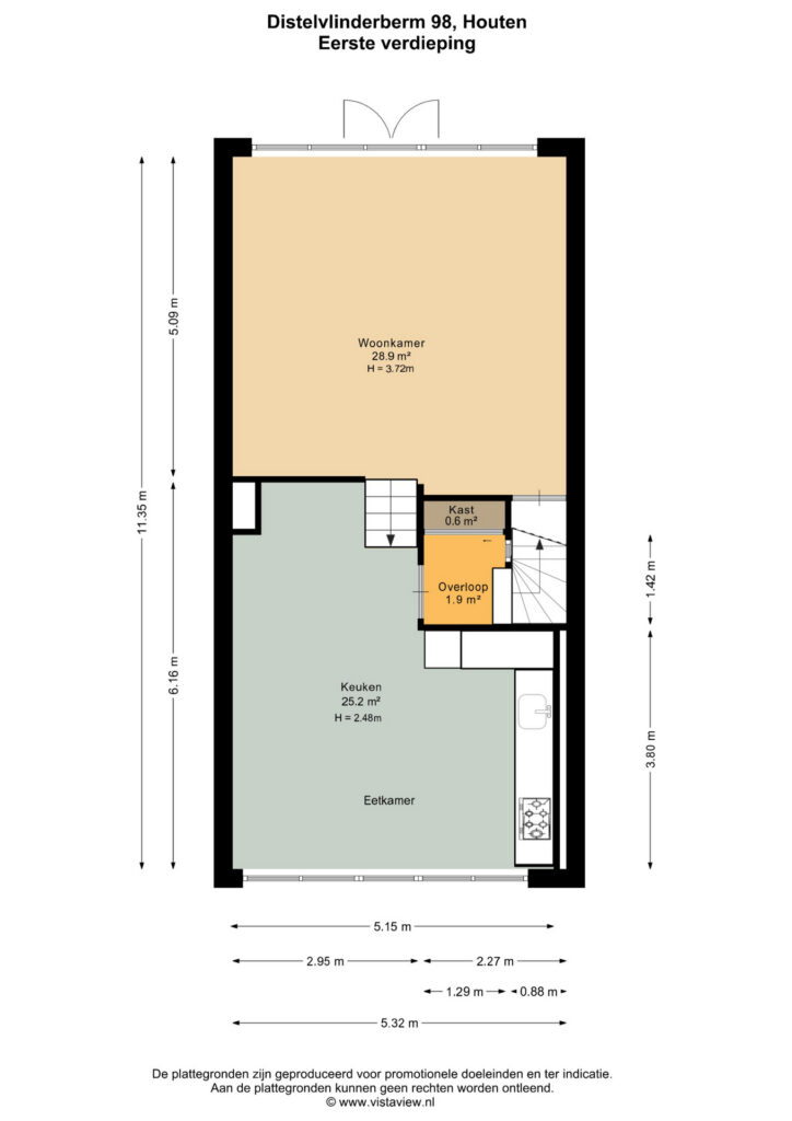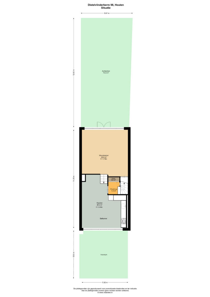 A second short staircase brings you to the cosy kitchen-diner, arranged in a corner layout and fitted with built-in appliances. While cooking, you enjoy a beautiful view over the park. Both the living room and the kitchen feature a modern PVC floor.