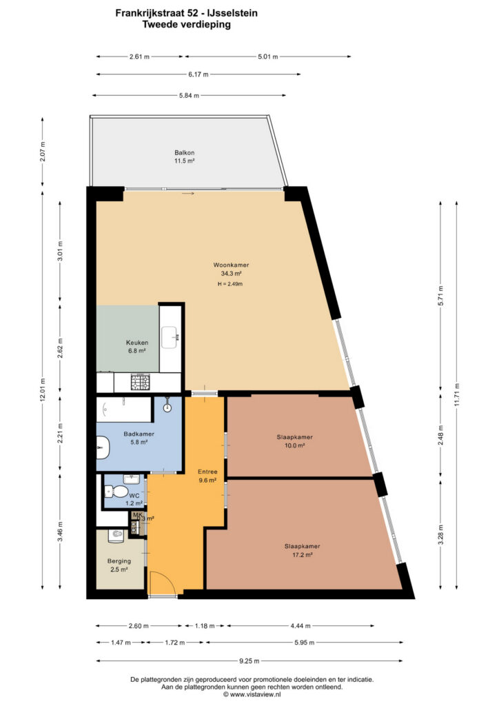 Het appartement is voorzien van twee ruime slaapkamers (17 en 10 m² groot). In de hal is een aparte berging met hierin de cv-ketel (uit 2014). Ideaal is het separate toilet. De badkamer ligt net als het toilet tegenover de slaapkamers en is circa 6 m² groot. De badkamer is wit van kleurstelling en is voorzien van ligbad, douche en wastafel. De woonkamer is 34 m² groot en heeft veel natuurlijk lichtinval door de hoekligging van het appartement. De keuken is half open ten opzichte van de woonkamer en is nog circa 7 m² groot. De keuken is in een L-vorm en is wit van kleurstelling. Het balkon is via de woonkamer te bereiken en is met 11,5 m² heerlijk ruim!