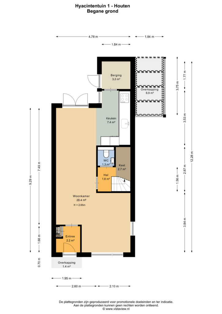 Bij binnenkomst word je verwelkomd in de hal, die toegang geeft tot de lichte en gezellige woonkamer. Aan de achterzijde van de woning bevindt zich de moderne keuken in praktische hoekopstelling, compleet met diverse inbouwapparatuur. Aansluitend vind je een aangebouwde berging annex bijkeuken, ideaal voor extra opslag of het plaatsen van witgoed.
