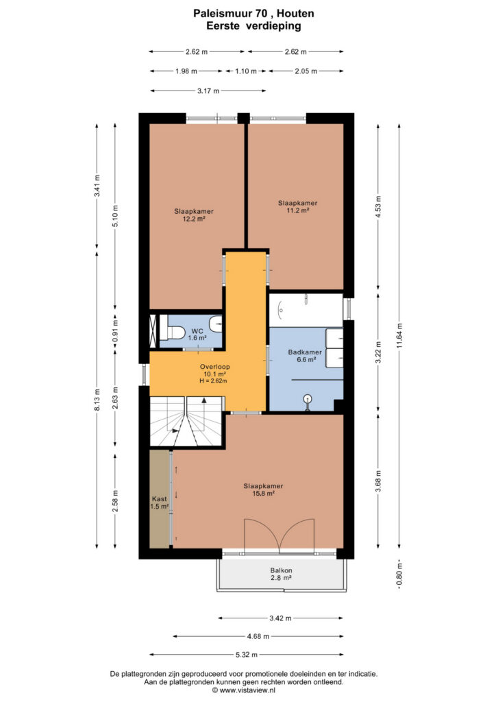 Extra praktisch is het afzonderlijke toilet op de overloop – ideaal voor drukke ochtenden. De nette badkamer is compleet uitgerust met een ligbad, een douche en een stijlvol wastafelmeubel. Een fijne plek om de dag ontspannen te beginnen of juist rustig af te sluiten.