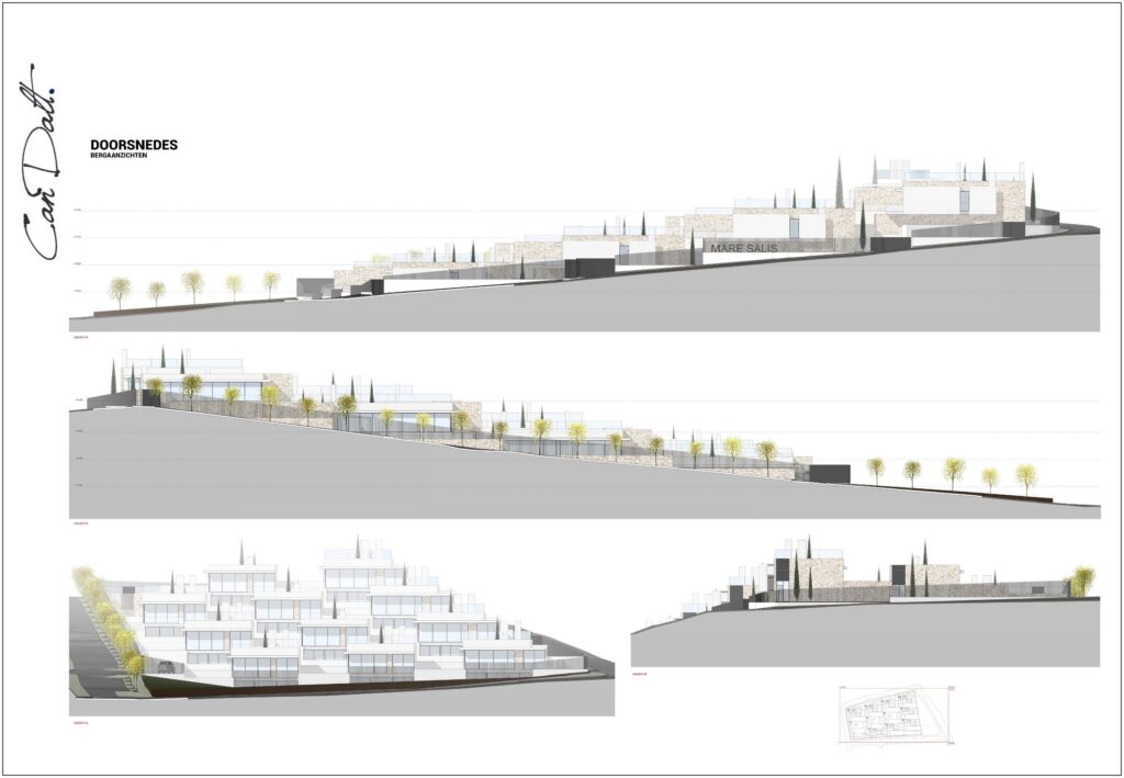 Can Dalt is een nieuwbouwproject bestaande uit 12 riante villa’s in Santa Eulalia del Río. Santa Eulalia ligt aan de oostkant van Ibiza op circa 15 minuten van Ibiza Stad en het vliegveld. De villa’s vallen op door hun zeer stijlvolle architectuur, lichtinval en adembenemend uitzicht. Het ontwerp van het project sluit naadloos aan bij de omgeving en de grote tuin met meerdere terrassen en privé zwembaden. Dit creëert een gevoel van rust en ruimte op het prachtige Ibiza. Een unieke locatie die omringd is door schitterende natuur en een prachtig uitzicht op de Middellandse Zee. Eén van de beste plekken op het eiland, rustig maar tegelijkertijd in een omgeving die voorzien is van allerlei faciliteiten en voorzieningen, zoals een sportcomplex (zie verder bij sportfaciliteiten), het stadscentrum en de jachthaven. Villa’s 1 t/m 11 liggen op een volledig privé en beveiligd complex met parkeermogelijkheid in de parkeerkelder onder de villa’s. Villa nummer 12 wordt gebouwd op een eigen kavel met eigen privé toegang en parkeermogelijkheid.