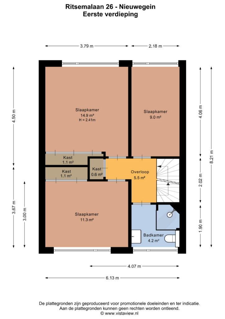 – Breedtemaat van 6,13 meter: extra ruim;