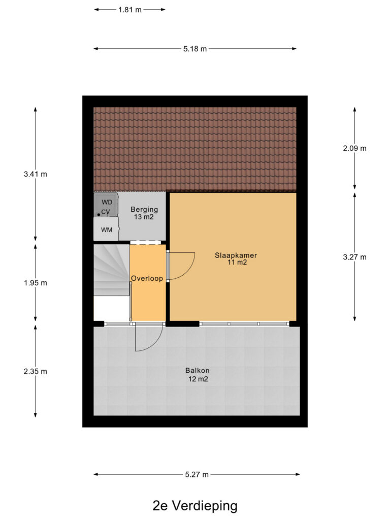– de tweede verdieping heeft een royaal dakterras;