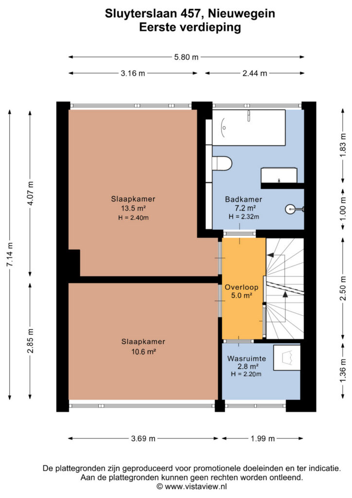 Twee ruime slaapkamers van 10.6 en 13.5 m² groot. De badkamer ligt aan de achterzijde van de woning en is vernieuwd in 2024. Ook de badkamer is met ruim 7 m² prettig ruim. De stijl is luxe van uitvoering: mooie zandkleur tegels, een douche, een ligbad en een toilet. Er is een groot raampartij aanwezig voor natuurlijk daglicht. Ook kan er een raam open in de badkamer. Er is nog een handige wasruimte van bijna 3 m² aan de voorzijde van de woning aanwezig.