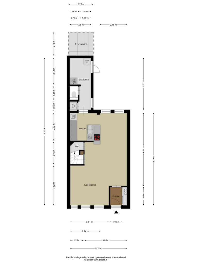 Je komt binnen in de entree met aan de rechterzijde de meterkast. Vanuit hier heb je toegang tot de lichte woonkamer aan de voorzijde, waar de grote raampartijen zorgen voor een prettige, natuurlijke lichtinval. Praktisch is de trapkast en de trapopgang naar de eerste verdieping. Aan de achterzijde bevindt zich de open keuken met een modern schiereiland en voldoende ruimte voor een gezellige eettafel. Aansluitend vind je de bijkeuken met een nette toiletruimte en aansluitingen voor wasmachine en droger.
