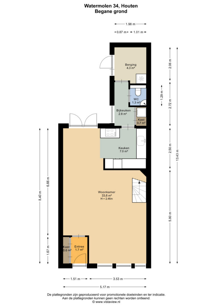 Je komt binnen in een nette entree/hal met een up-to-date meterkast. De lichte, ruime woonkamer is een fijne plek om te ontspannen, met volop daglichtinval. Aan de achterzijde bevindt zich de moderne hoekkeuken, voorzien van diverse inbouwapparatuur – een heerlijke plek om te koken en gezellig samen te komen. Vanuit de keuken is er toegang tot een achterhal met het toilet en een praktische bijkeuken/aanpandige berging, ideaal voor extra opslag. Hiervandaan loop je zo de tuin in.