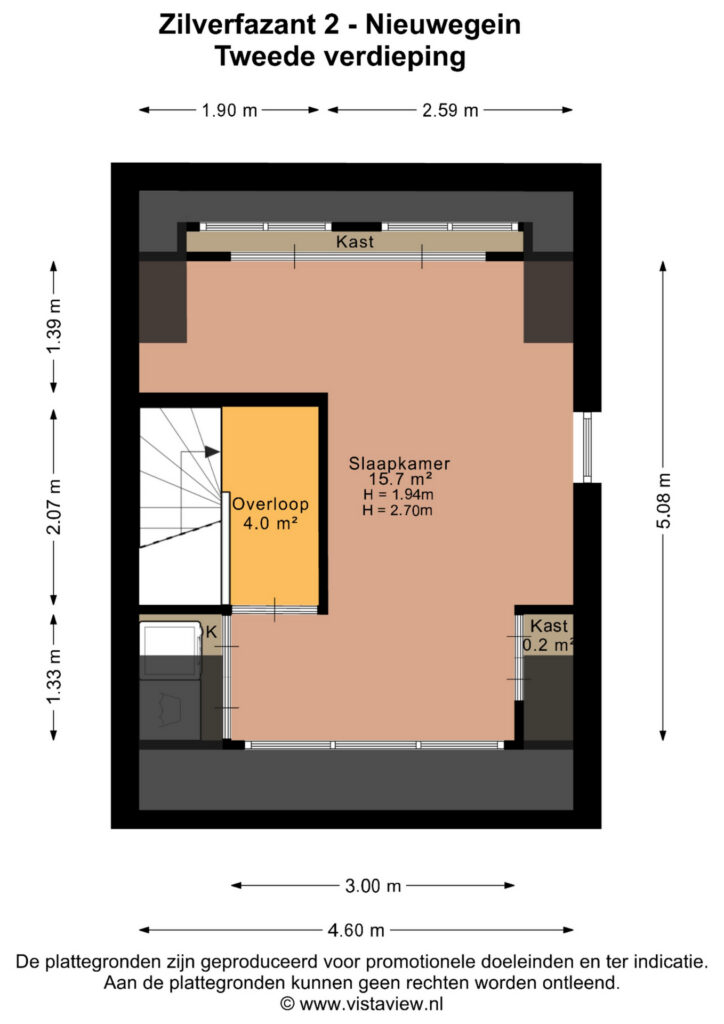 Voorzolder met de wasmachineaansluiting, netjes weggewerkt in een inbouwkast. Daarnaast bevindt zich hier een ruime slaapkamer met twee dakkapellen, gestuukte wanden, inbouwspots, kunststof kozijnen en een laminaatvloer.